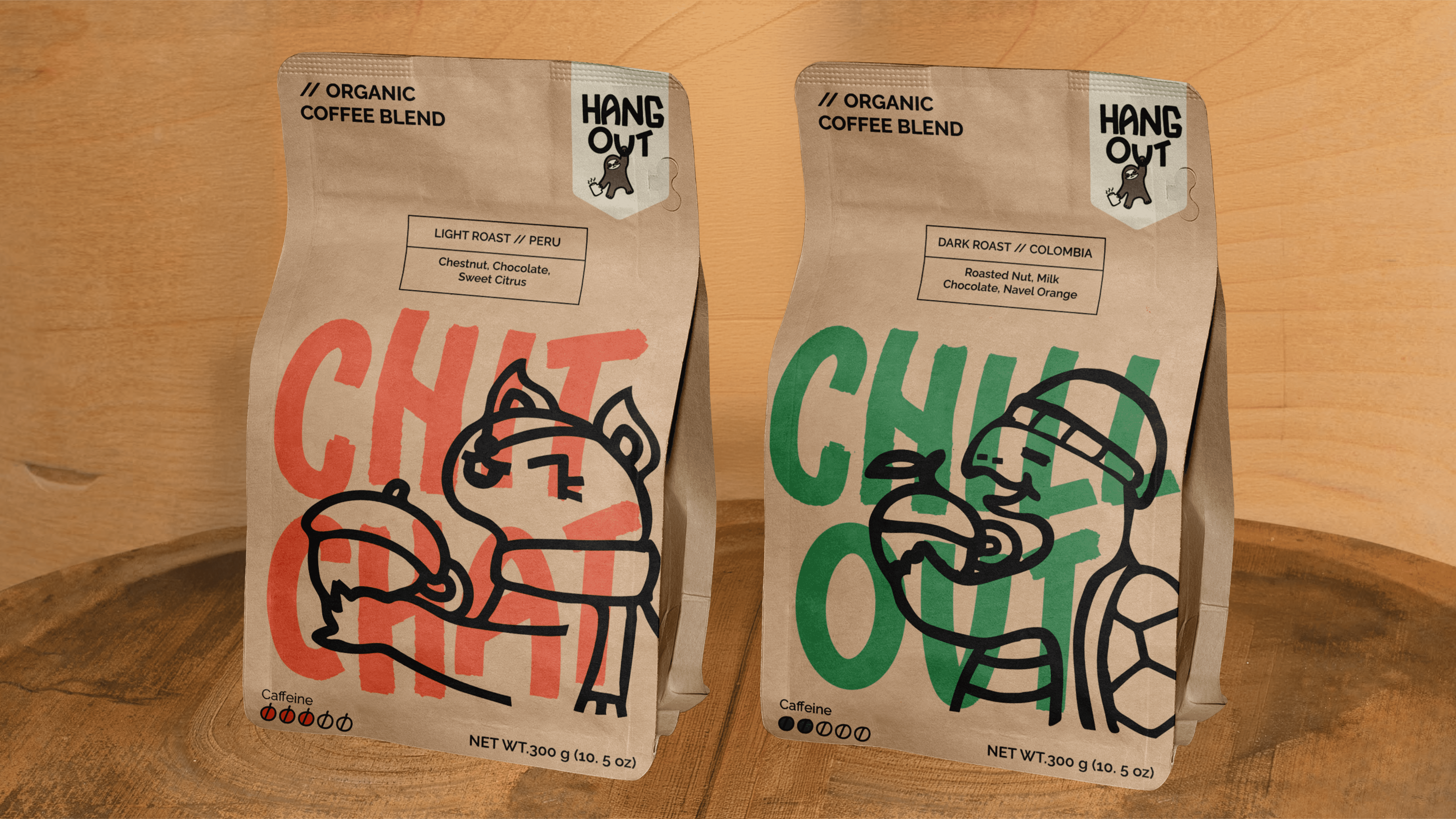 Hangout is a coffee shop/social space that fosters community, creativity, and connection. The branding revolves around a playful, inclusive “gaggle” of animal friends; each one quirky, relatable, and with its own personality. The goal is to create a relatable brand identity.